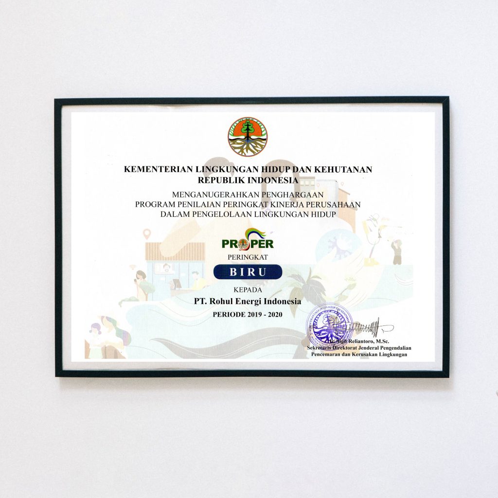 REI commitment to conserve the environment has been appreciated by the Indonesian Ministry of Environment and Forestry that asses the company performance ratings in environmental management, by awarding REI with PROPER Blue Rank for 4 consecutives year between 2018-2020.